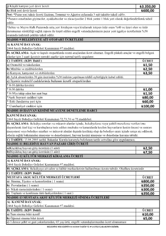 MADDE-9 BELEDİYEYE AİT OTOPART ÜCRETLERİ