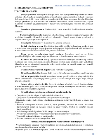 B- STRATEJİK PLANLAMA ÇERÇEVESİ