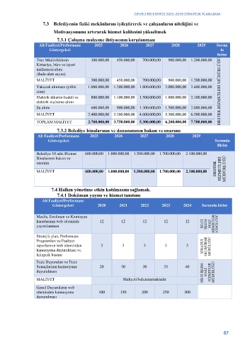 7.3 Belediyenin fiziki mekânlarını iyileştirerek ve çalışanların niteliğini ve